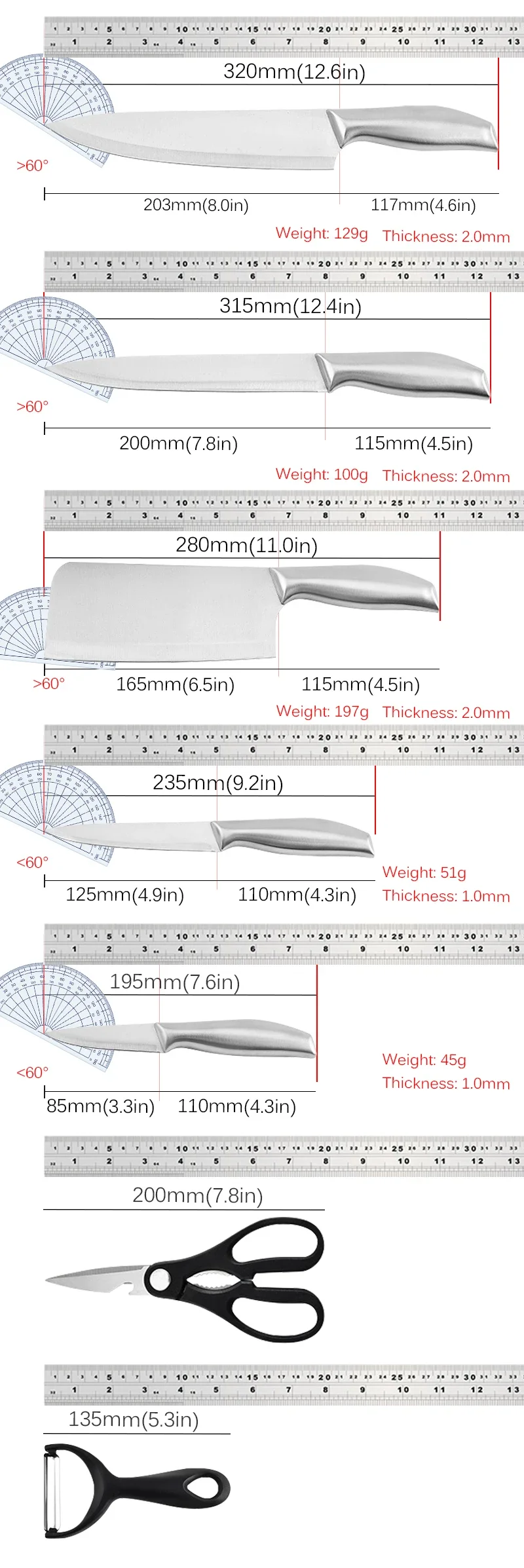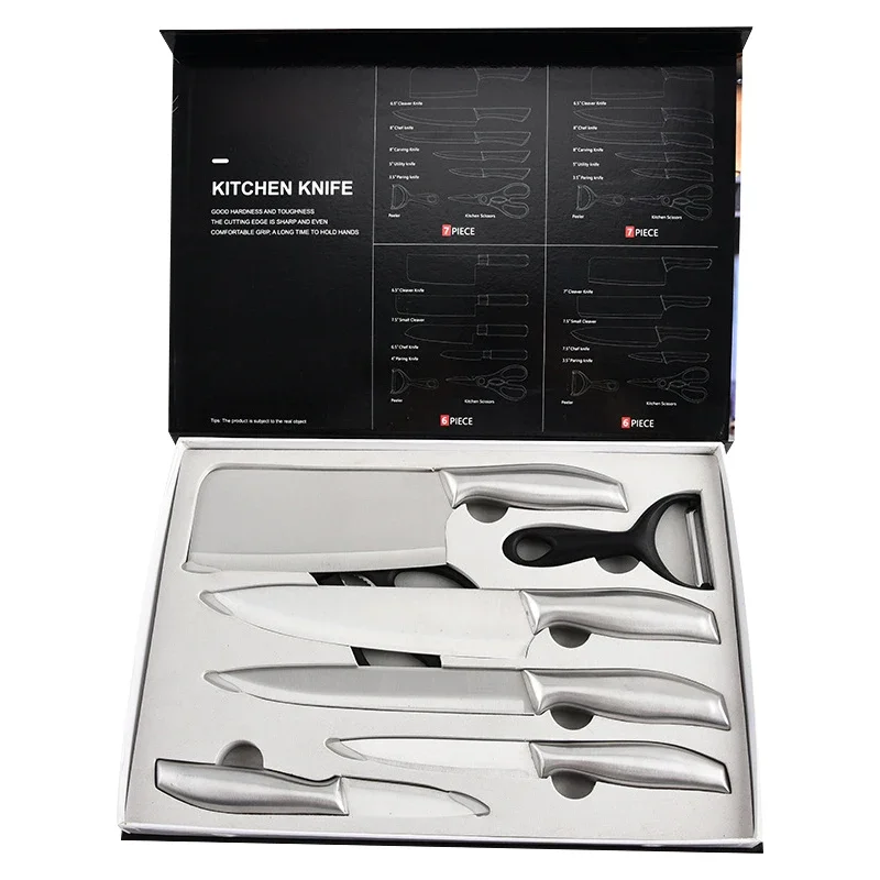 7PCS Kitchen Chef Knife Set Stainless Steel Meat Fish Fruit Knife Peeler for Vegetables Kitchen Scissors Butcher Cleaver Knives