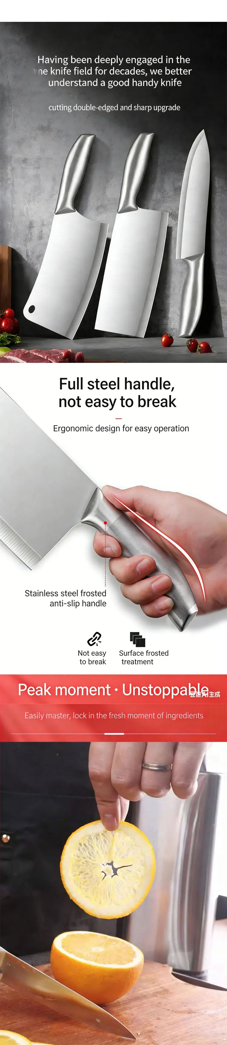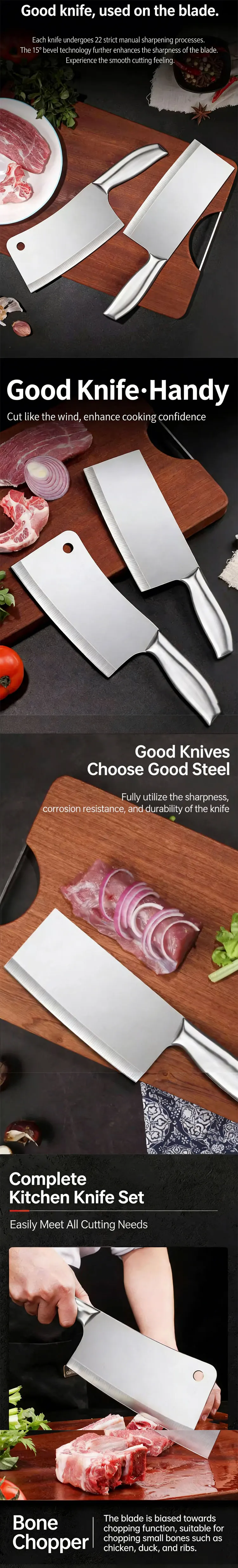 Each knife is crafted using professional forging techniques, ensuring a dense grain structure for superior sharpness, durability, and corrosion resistance. Built to maintain a sharp edge through daily use on meat, bones, vegetables, and fruits.